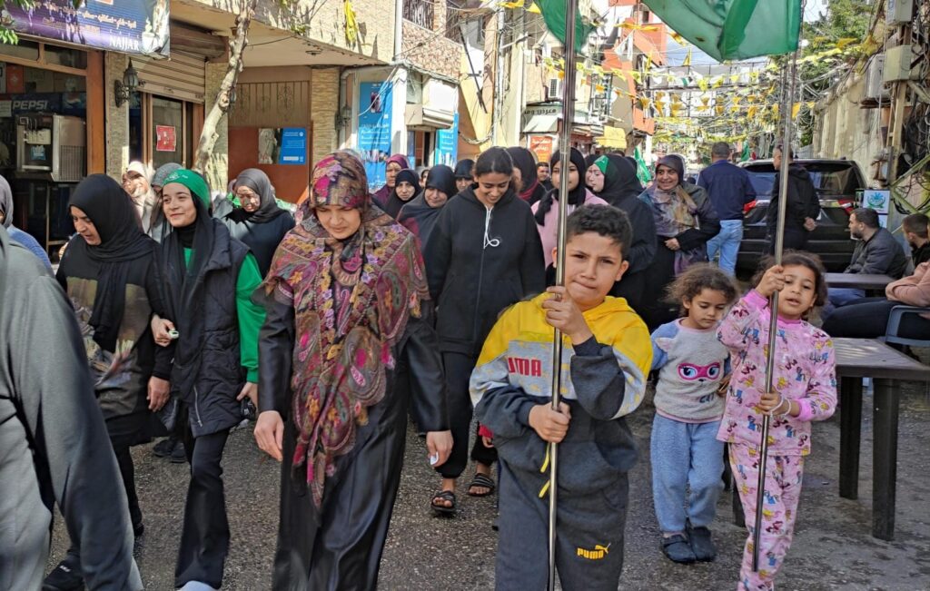 وشارك مئات اللاجئين في مخيم عين الحلوة في صيدا جنوب لبنان، بمسيرة حاشدة جابت أحياء وشوارع المخيم، رافعين الأعلام الفلسطينية ورايات المقاومة، ومجسمات تجسد الأطفال الشهداء جراء حرب التجويع التي يشنها الاحتلال على أطفال ونساء وشيوخ القطاع.