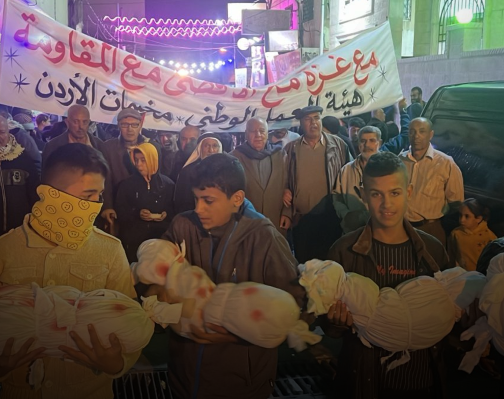 شارك مئات اللاجئين الفلسطينيين في مظاهرة حاشدة جابت شوارع مخيم إربد للاجئين الفلسطينيين شمالي الأردن، مساء أمس الاثنين، دعماً لأهل غزة، وتنديداً بحرب الإبادة “الإسرائيلي” المستمرة على قطاع غزة المحاصر، و”تعمد الغارات الإسرائيلية استهداف المدنيين والمرضى والنازحين في المنازل المأهولة والمستشفيات ومراكز النزوح”