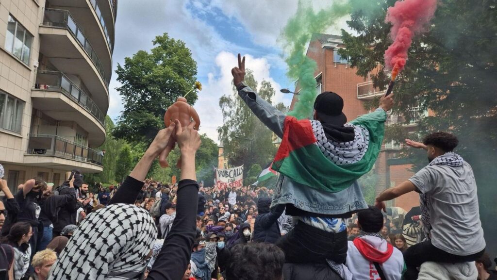 شهدت العاصمة البلجيكية بروكسل تظاهرة جماهيرية حاشدة مساء الجمعة ؛ توجهت الى السفارة الامريكية تنديدا بموقف الإدارة الامريكية؛ باعتبارها داعما للإبادة والحرب على قطاع غزة . وشارك المئات من المتضامنين وطلبة الجامعات في التظاهرة الحاشدة أمام مبنى السفارة بالعاصمة البلجيكية. من بينهم سياسيين وأعضاء بالبرلمان البلجيكي والاوربي. والعديد من القوى السياسية والنقابات ؛ ورفع المشاركون اعلام فلسطين وصور ما يتعرض له الفلسطينيين من إبادة في قطاع غزة .