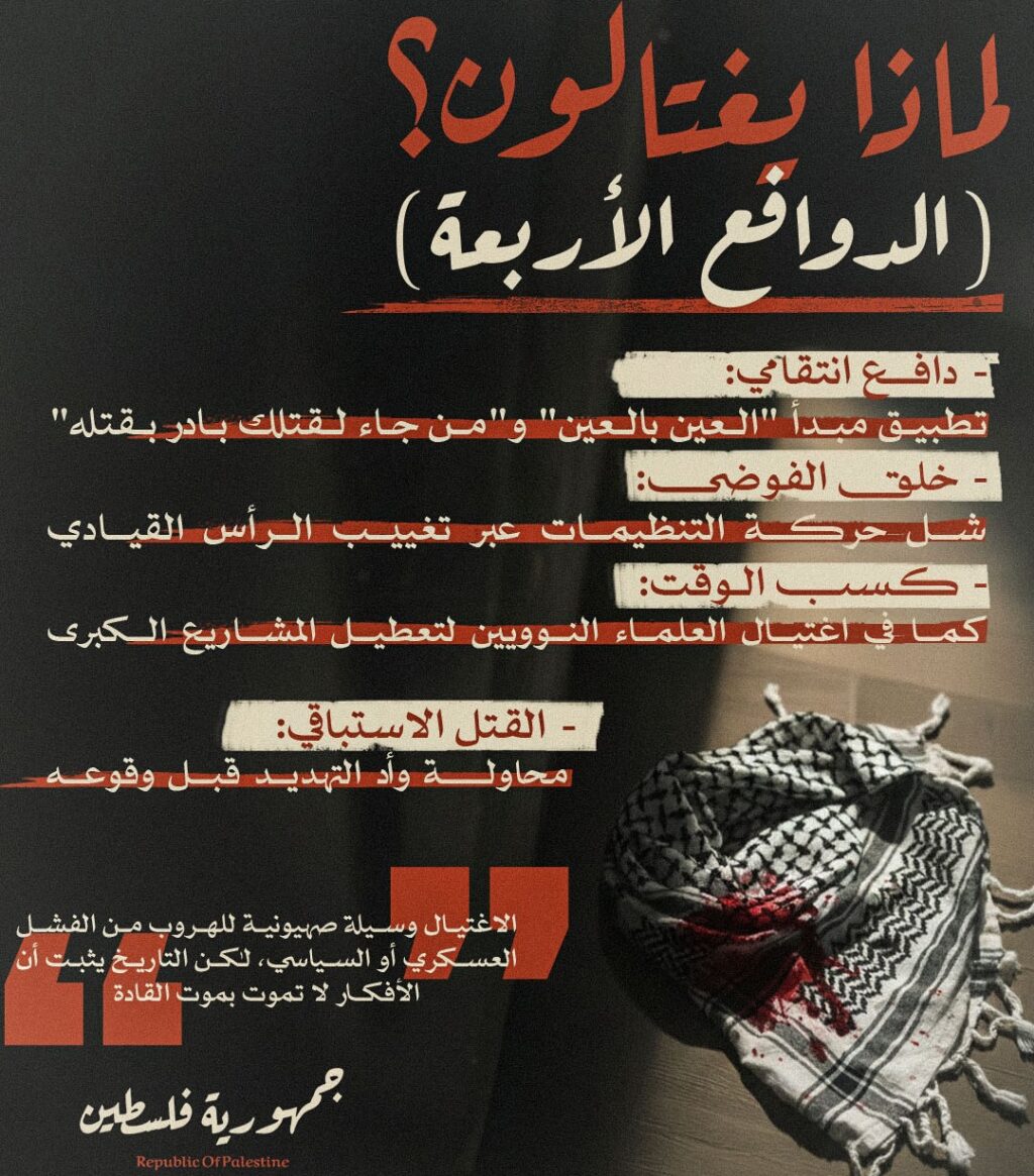 الاغتيالات في اتون حرب الابادة ضد الشعب الفلسطيني منذ السابع من أكتوبر 2023
