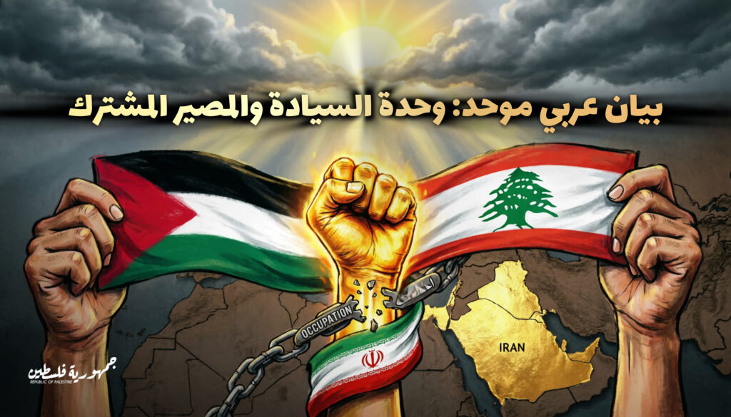 وأكد البيان أن هذا التصعيد يمثل تهديداً وجودياً لن يراعي حتى تلك المكونات المنصاعة للشروط الاستعمارية أو التي فتحت أراضيها وسماءها للقواعد الأجنبية لتعتدي على دول الجوار في فلسطين وسوريا ولبنان واليمن والعراق وصولاً إلى إيران، مشدداً على أن أي فهم للعروبة التحررية يرفض التعايش مع منطق تسليم البلاد للغزاة تحت مسمى “السيادة”.