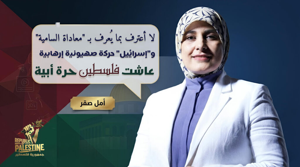 وقالت صقر بوضوح: “لا أعترف ولن أعترف بإسرائيل كدولة، فهي بالنسبة لي حركة صهيونية استيطانية إرهابية قائمة على الأراضي الفلسطينية”.
