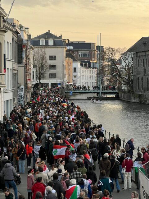نظمت مساء يوم الأحد الموافق 24/11/2024 مسيرة حاشدة في غنت البلجيكية تضامنًا مع فلسطين ولبنان: دعوات لمحاسبة قادة الاحتلال الإسرائيلي؛ حيث شهدت مدينة غنت البلجيكية مسيرة جماهيرية حاشدة نظّمها ائتلاف