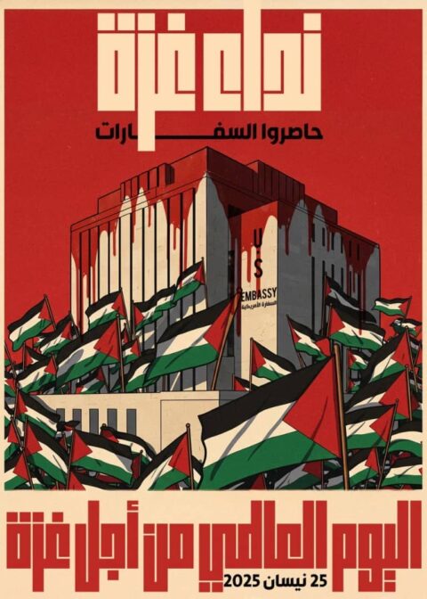 يوم عالمي لمحاصرة السفارات الأمريكية دعماً لغزةالجمعة 25 أبريل/ نيسان ٢٠٢٥ من غزة، من قلب الإبادة الجماعية والعدوان المستمر، نوجّه هذا النداء إلى شعوب العالم، إلى النقابات، إلى الحركات الطلابية،