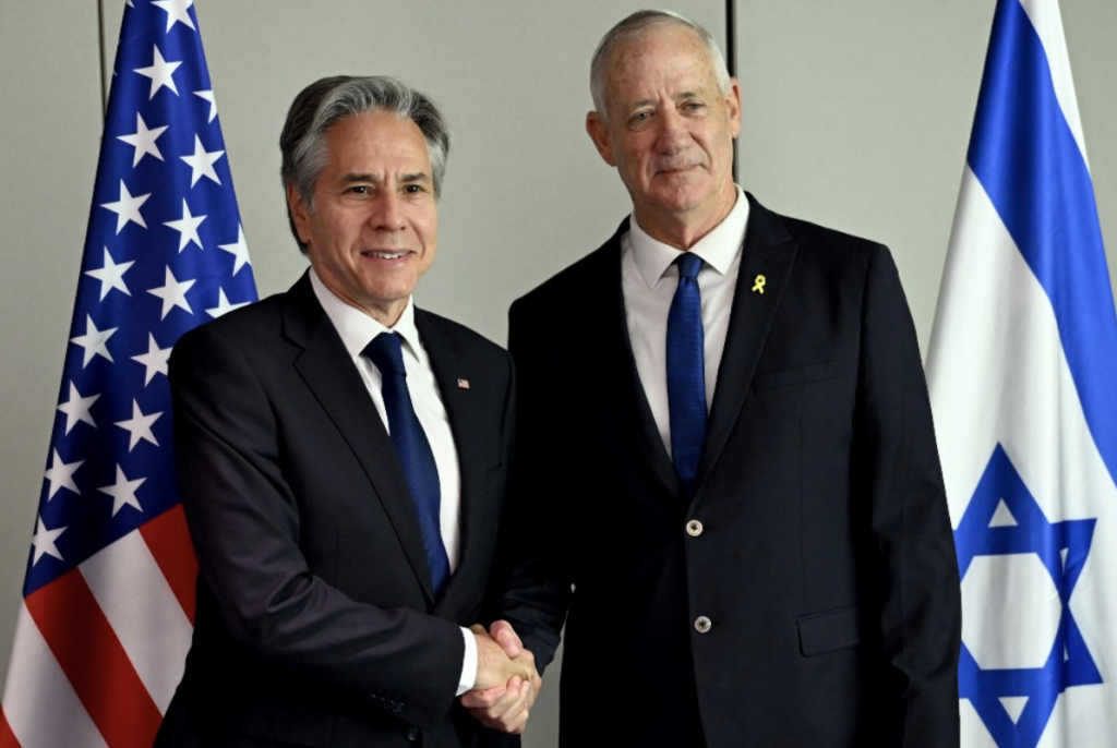 US Secretary of State Antony Blinken (L) poses with Benny Gantz in Tel Aviv, 11 June 2024 (David Azagury/AFP)