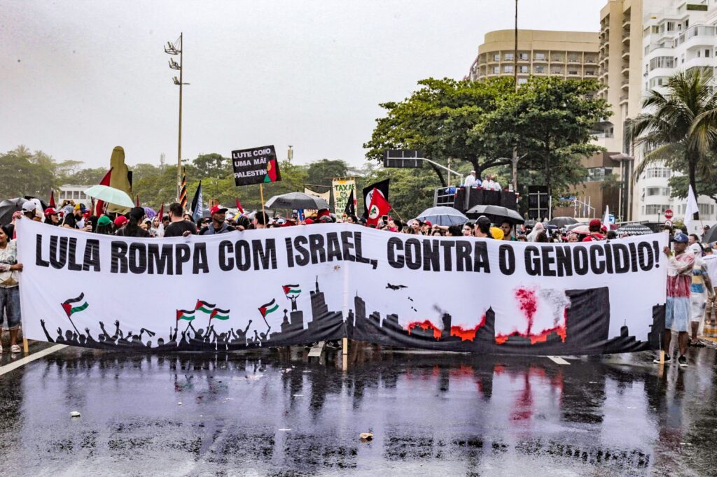 The first to speak was Palestinian activist and director of the Palestinian Institute for Public Democracy (PIPD), Rula Shahid, who moved the audience present at Fundição Progresso, “We are the Palestinian people who have suffered for 76 years from continuous colonial measures, manifested in the denial of the right of return of refugees, checkpoints, land confiscation, collective punishments by violent means, and military bombings.” The activist, who provided figures on atrocities committed by Israeli forces in the Palestinian territories, continued, “murders, forced displacement, home demolitions, and arrests.”