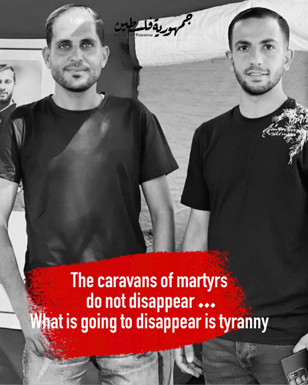 The editorial staff of the Republic of Palestine mourns the martyrs of truth — brave journalists who were assassinated in a horrific massacre carried out by the Israeli occupation.