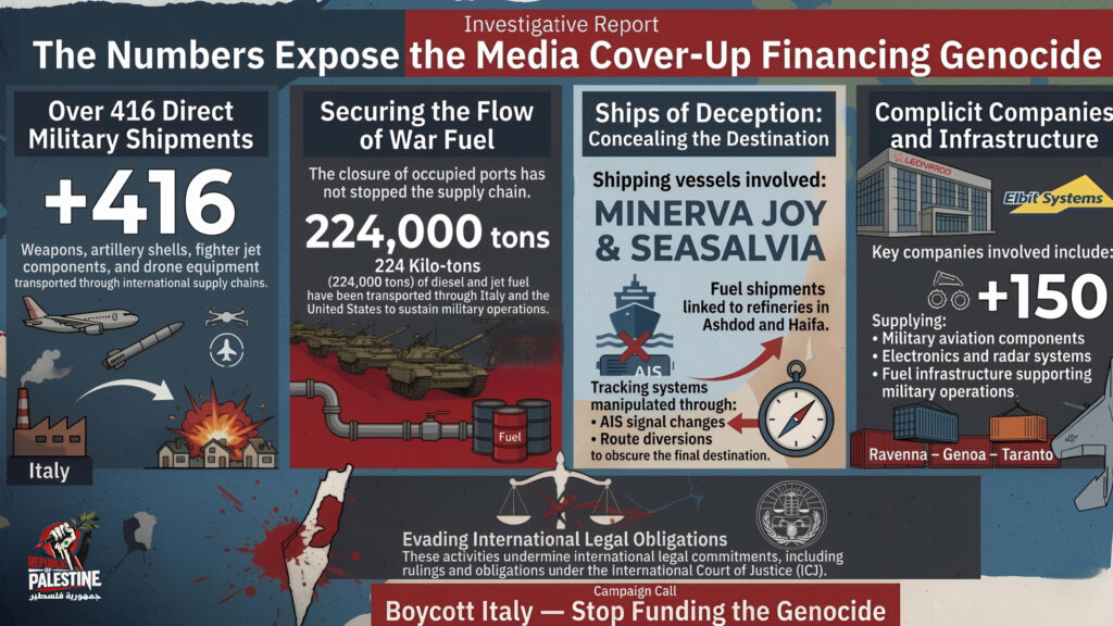 While the Italian government, led by Giorgia Meloni, reassured global public opinion that it had “suspended” arms exports to Israel since October 2023, Italian factories and ports were reportedly operating at full capacity to ensure the continued flow of what critics describe as “instruments of death.”