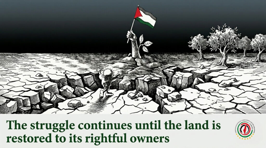 The Union of Palestinian Communities and Institutions in Europe concluded its statement by renewing its commitment to continue the struggle on all political, legal, and popular levels, while calling on Palestinian communities and people of conscience across Europe to take part in mass mobilizations and escalate civil action in defense of Palestinian rights and in support of their just cause until freedom and full sovereignty are achieved.