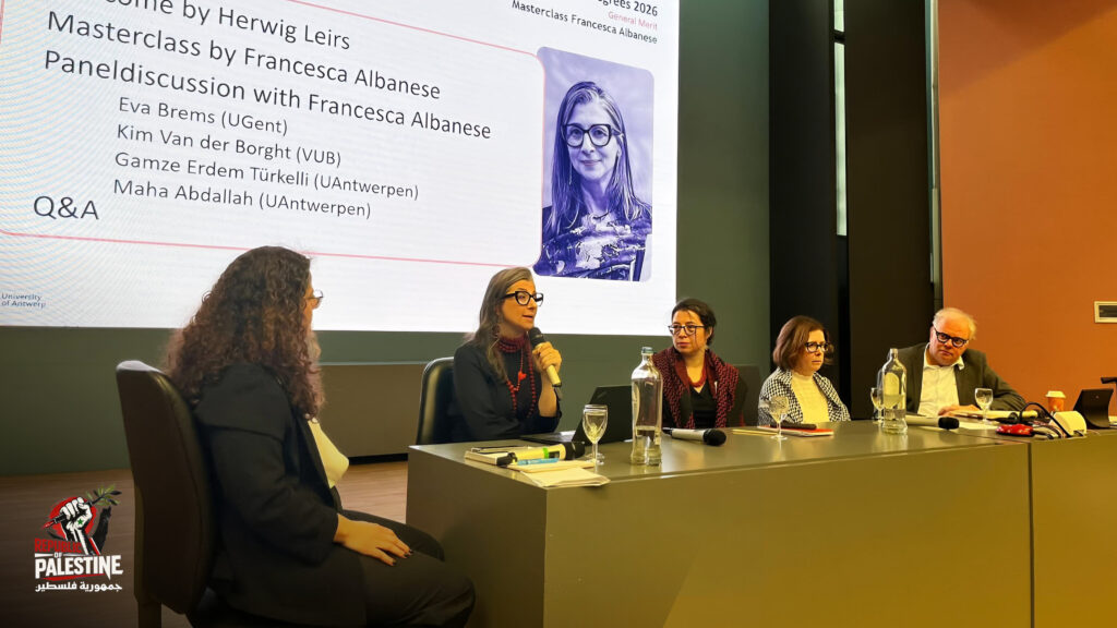 The ceremony witnessed notable tension when the President of the University of Antwerp, Herwig Leirs, stated that the award “does not target Israel.” His remarks were met with strong backlash and audible disapproval from attendees, who interrupted with chants condemning the massacres in Gaza and calling for concrete action beyond symbolic recognition.