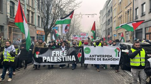 Antwerp, Belgium | Saturday 11/01/2025 (Republic of Palestine). -The Belgian city of Antwerp witnessed a massive demonstration, as hundreds of activists and participants gathered in Waterpoort Square despite the cold