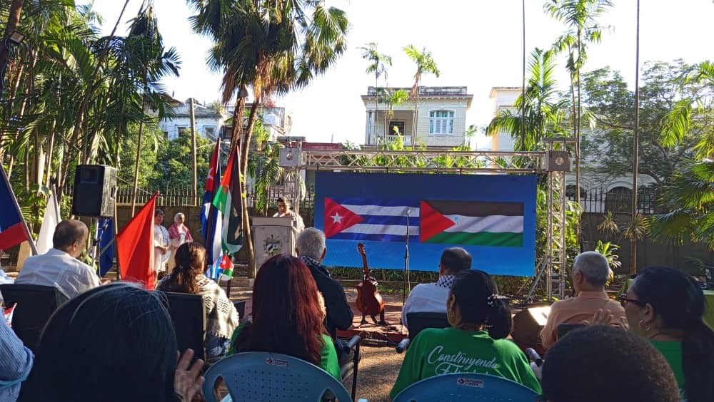 El acto político-cultural fue organizado por el Instituto Cubano de Amistad con los Pueblos-ICAP, y contó con la presencia de Teresa Amarelle Boué, miembro del Buró Político del Comité Central del Partido Comunista de Cuba y Presidenta de la Federación de Mujeres Cubanas, Emilio Lozada García, Jefe del Departamento de Relaciones Internacionales del Comité Central del Partido, Majed Abu Al hawa, Encargado de Negocios de la Embajada de Palestina en Cuba, el líder independentista puertorriqueño Julio Muriente, la Embajada de Palestina, miembros del cuerpo diplomático acreditado en Cuba, en concreto el Embajador de Sudáfrica, miembros del Comité Internacional por la Paz, la Justicia y la Dignidad de los Pueblos, estudiantes palestinos y sindicatos populares.