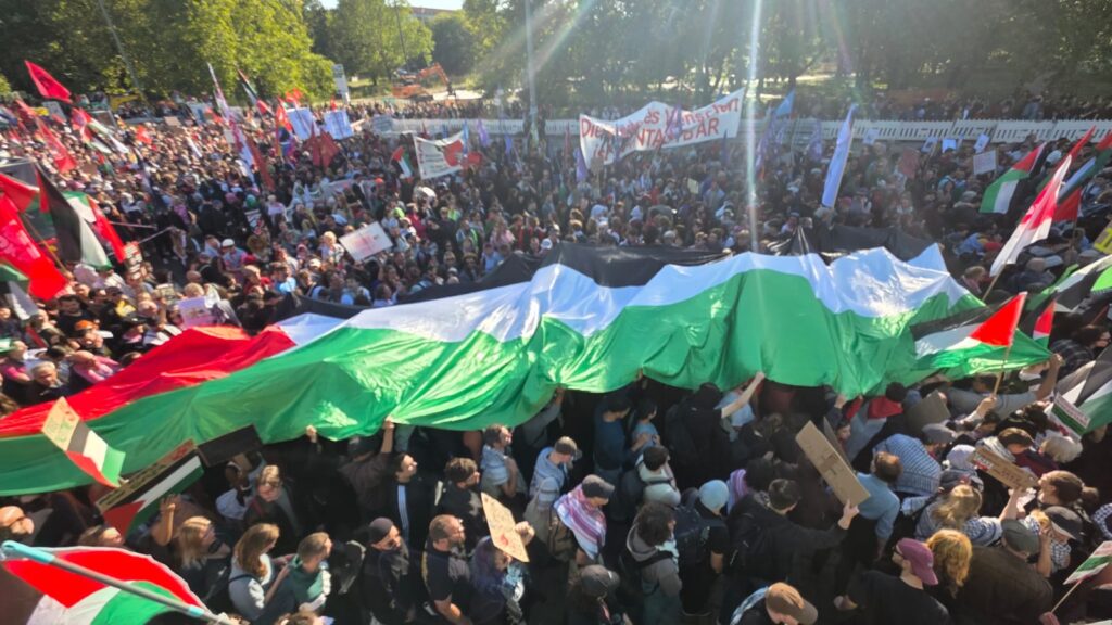 La capital alemana fue escenario de una gran manifestación convocada por el Partido de la Izquierda Alemana (Die Linke) en cooperación con una coalición internacional de grupos de solidaridad con Palestina y movimientos antiimperialistas, bajo el lema: “De Berlín a Gaza: No al genocidio, No a la ocupación.”