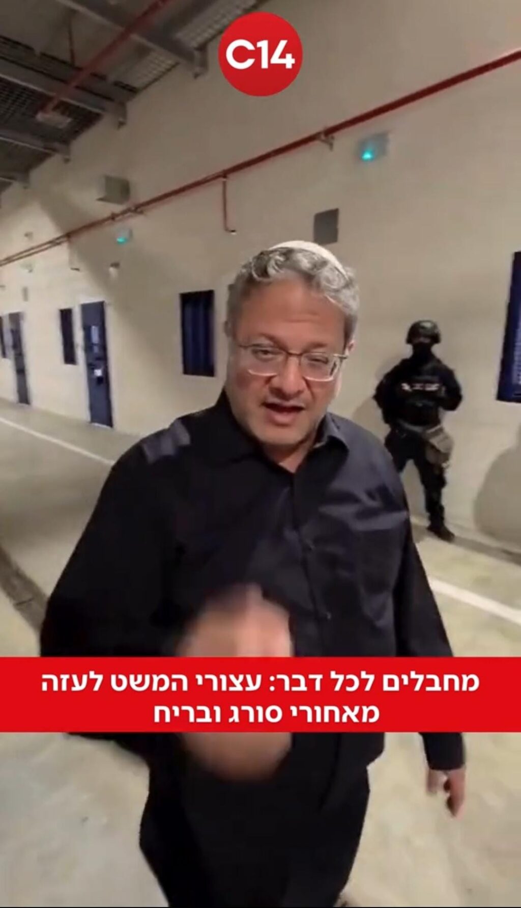 En este contexto, declaraciones del ministro de «Seguridad Nacional», Itamar Ben Gvir, confirmaron el rostro sionista hostil hacia los pueblos y hacia la humanidad, después de aparecer en un video transmitido por el canal 14 israelí desde el interior de la prisión, diciendo: «Los detenidos de la Flotilla reciben un trato como terroristas». Ben Gvir añadió en el video: «Estamos en la prisión de Ketziot, y como prometí, las personas que vinieron con la flotilla, que apoyan el terrorismo, están en una prisión de seguridad». Y agregó: «Reciben trato de terroristas», describiéndolos como tales.