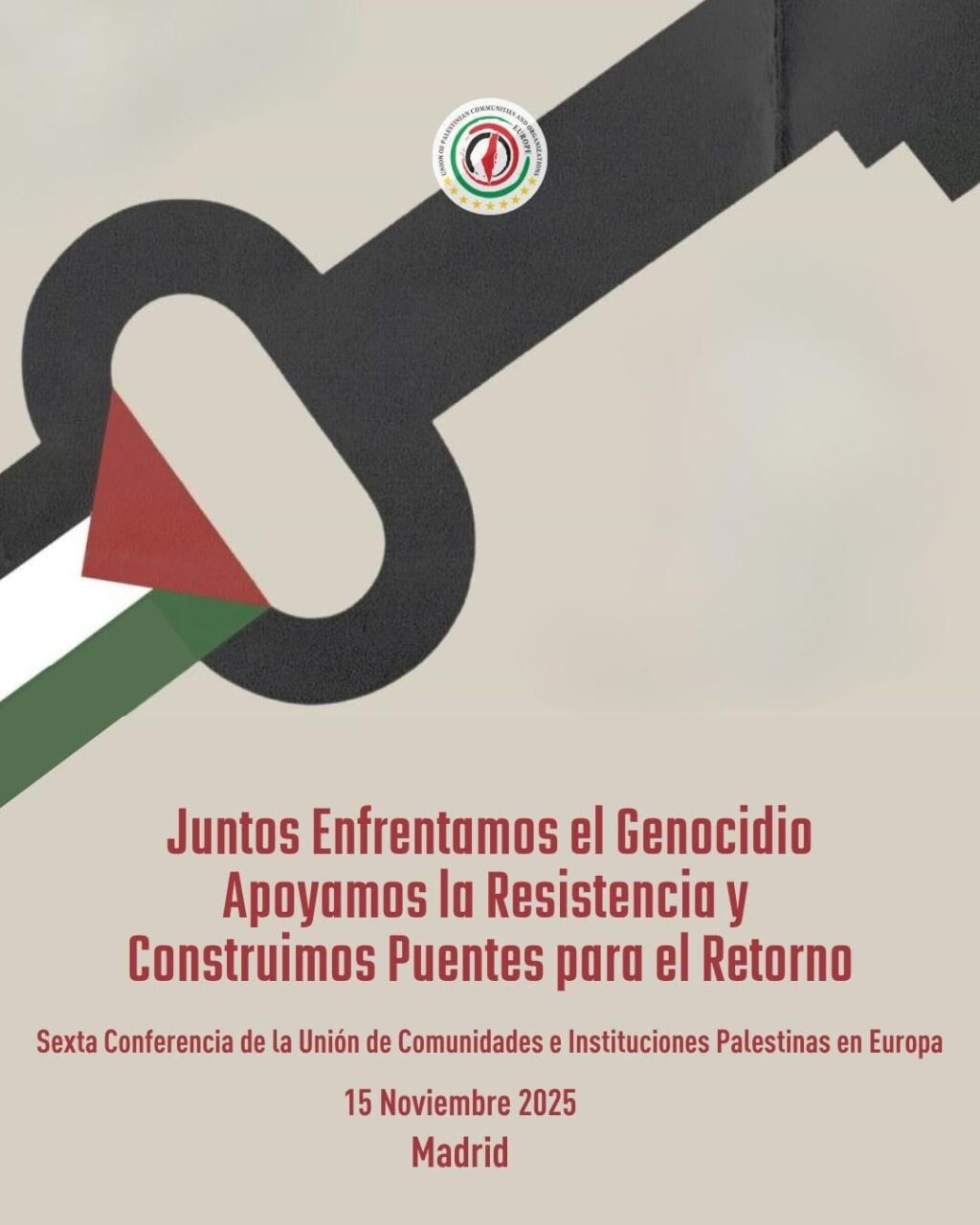 La Unión de Comunidades e Instituciones Palestinas en Europa celebrará su sexta conferencia General en la capital española, Madrid, el sábado 15 de noviembre de 2025, bajo el lema: