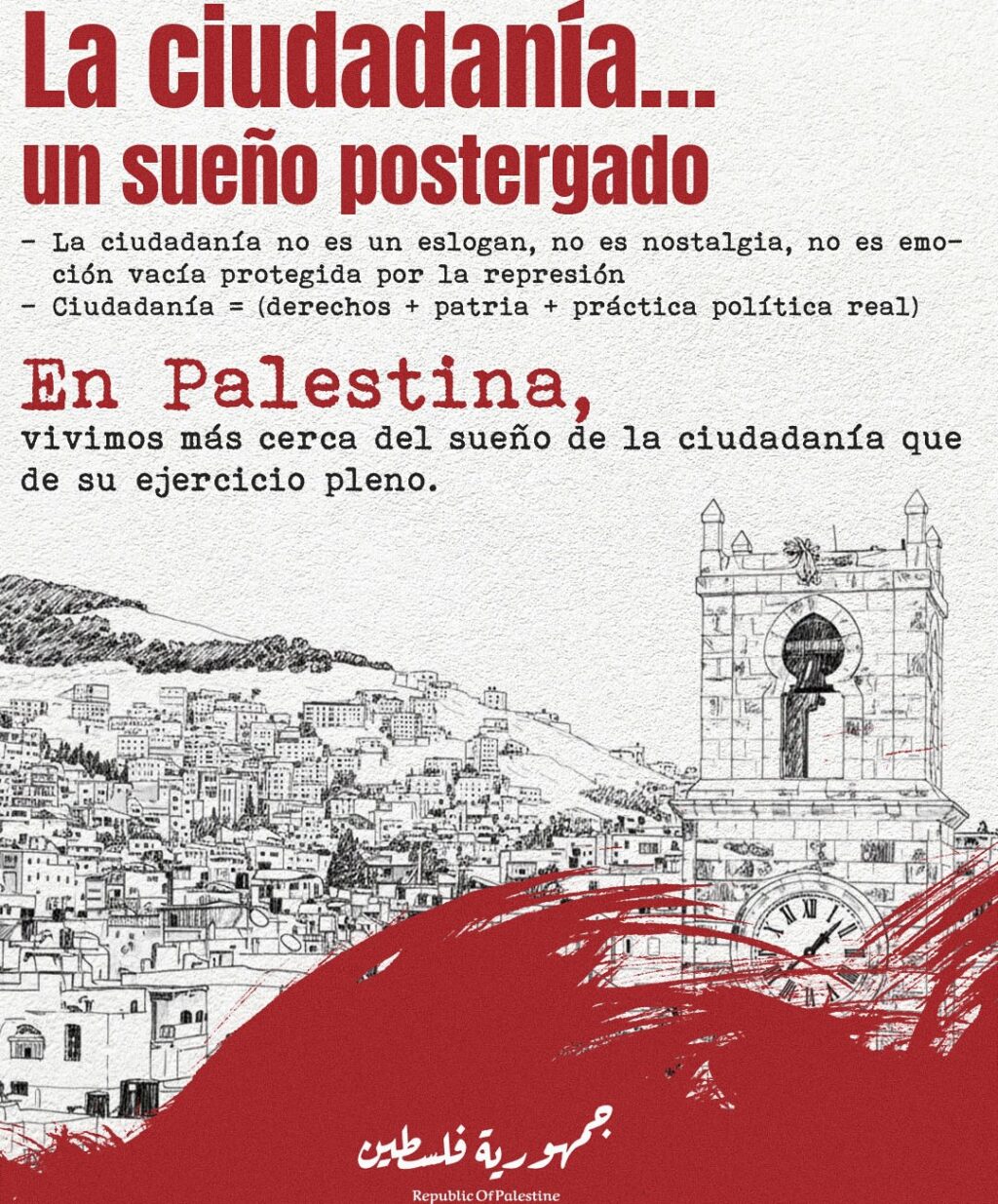 La cercanía a Palestina no implica necesariamente la realización de la ciudadanía palestina; es, en esencia, una cercanía al sueño de la ciudadanía. La ciudadanía no es un eslogan emocional, sino una formulación integral: la formulación del ciudadano, la formulación de la patria, y la definición de la relación entre derechos y deberes dentro de un marco político y social claro.