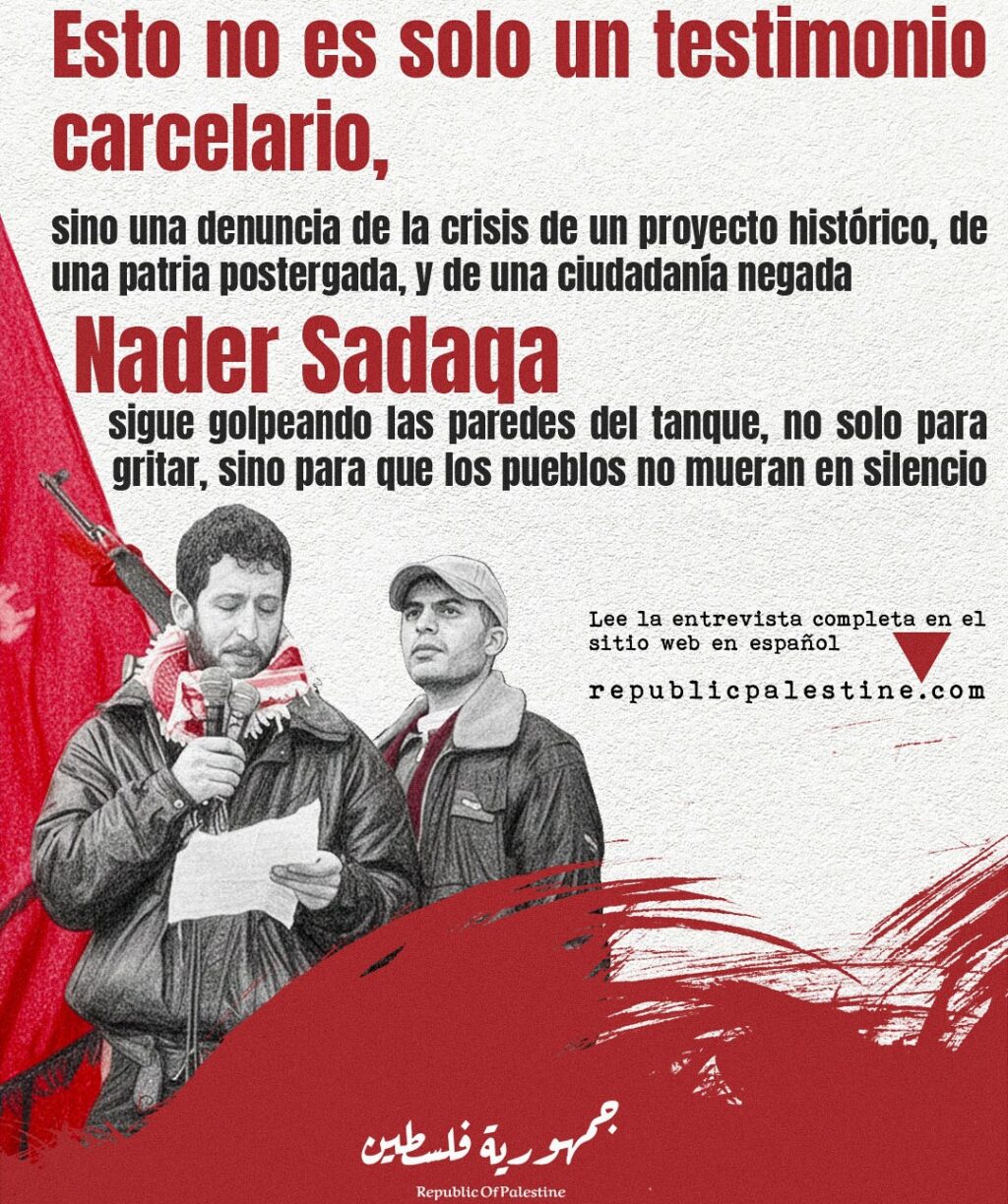En esta entrevista, el prisionero liberado Nader Sadaqa no ofrece únicamente un relato autobiográfico de la experiencia carcelaria, sino que se adentra profundamente en la deconstrucción de los conceptos de ciudadanía, pertenencia, identidad, el movimiento de prisioneros, la relación entre la cárcel y la calle, y el estado del acumulado nacional palestino tras décadas de ocupación, división, reparto y erosión de la estructura política y social. Es un texto de pensamiento político tanto como un testimonio de lucha, y una interpelación directa a toda una etapa histórica.